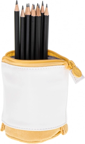 Ez a teleszkópos, 2 az 1-ben tolltartó kiváló választás iskolásoknak, diákoknak és profiknak egyaránt. A felső rész egyszerű lehúzásával álló tolltartóvá alakítható, amely helyet takarít meg és rendezi a munkafelületet. A minimalista design, az ökobőr és kordbársony kombinációja modern hatást kelt, és kellemes tapintású.