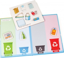 A mágneses zárótáblák és a tematikus elemek segítik a gyerekeket a szelektív hulladékgyűjtés és a természetvédelem megértésében. A játék felelősségre és gyakorlati készségekre nevel.