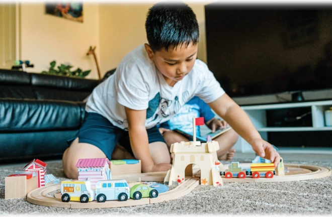 A szett ideális közös családi játékhoz és óvodai használatra is. Más márkák vonatpályáival kompatibilis, így könnyedén bővítheted gyűjteményed új pályákkal és kiegészítőkkel. Az elemek mérete a kisgyermekekhez igazodik, játék közben pedig fejlődik a finommotorika, a kéz–szem koordináció és a fantázia.