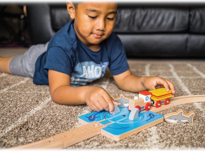 Az örvény cápákkal bármely fa vonatpályát izgalmas óceáni küldetéssé változtat. A gyerekek irányítják a pálya forgó szakaszát, és eldöntik, hogy a vonat biztonságosan elhalad-e a cápauszonyok mellett. Ez a játékelem feszültséget, történeteket és aktív bevonódást hoz a játékba.