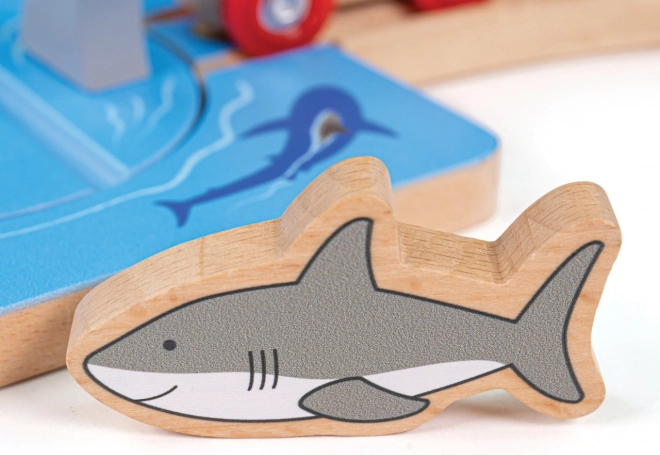 Vigyázat, cápaállkapcsok! A Bigjigs Rail örvény cápákkal fa vasútbővítés a gyerekeknek egy interaktív forgó platformot, két masszív cápafigurát és rengeteg fantáziadús játékot kínál. A platform forgatásával a gyerekek felváltva megnyitják vagy lezárják az átjárást a vonat előtt, ezzel természetes módon fejlesztik a finommotorikát, a koordinációt és a képzelőerőt. A minőségi fa kivitel ártalmatlan festékekkel és a legtöbb fa vonatpályával való kompatibilitás hosszú élettartamot és könnyű beillesztést garantál a meglévő kollekcióba.