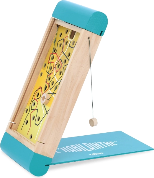 A kétoldalas kialakítás kettős élményt nyújt: a golyó precíz vezetését a pályákon karokkal, valamint az intuitív egyensúlyozást a teljes tábla döntésével. Az átgondolt konstrukciónak köszönhetően a fedél játék közben támaszként is szolgál, a termék pedig könnyen hordozható és jól tárolható.