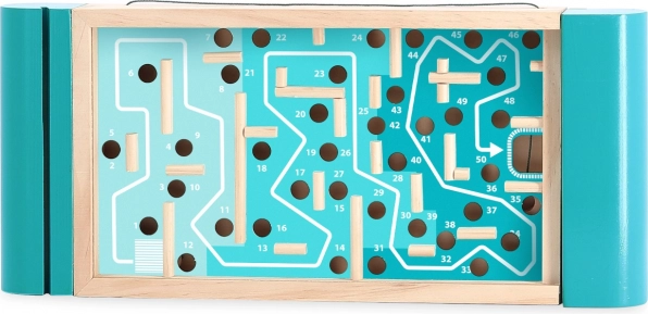 A minőségi anyagok – lakkozott fa, fém golyók és strapabíró szövet – garantálják a hosszú élettartamot. A játék fejleszti a finommotorikát, a türelmet, a koncentrációt és a stratégiai tervezést. Remek választás 5 éves kortól, közös családi szórakozáshoz is.