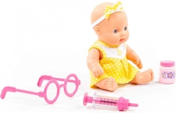Aranyos, 24 cm magas baba gazdag orvosi felszereléssel, amely órákig tartó fantáziadús szórakozást nyújt. A gyermek élvezheti a doktoros játékot, fejleszti a finommotorikát és a szociális készségeket olyan kiegészítők segítségével, mint a szemüveg, az injekciós fecskendő és a cumisüveg. Ideális 3 éves kortól.