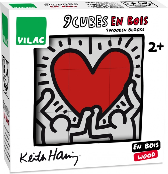 A klasszikus Vilac fa építőkockák készlete, amerikai művész Keith Haring ikonikus illusztrációival díszítve, egyesíti a művészetet a játékkal. Építs és hozz létre képeket, amik élénk színeikkel és vonalaikkal minden teret felélesztenek.