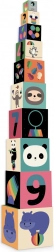 Egyedi összehajtható torony, amely akár 87 cm magasra nő, és teli van cirkuszi állatok és számok színes illusztrációival. A gyerekek szórakozás közben tanulnak számolni és fejlesztik finom motorikus készségeiket és koordinációjukat. A kialakításnak köszönhetően a játék könnyen tárolható, és vizuális stimulációt és kreatív játékot biztosít.