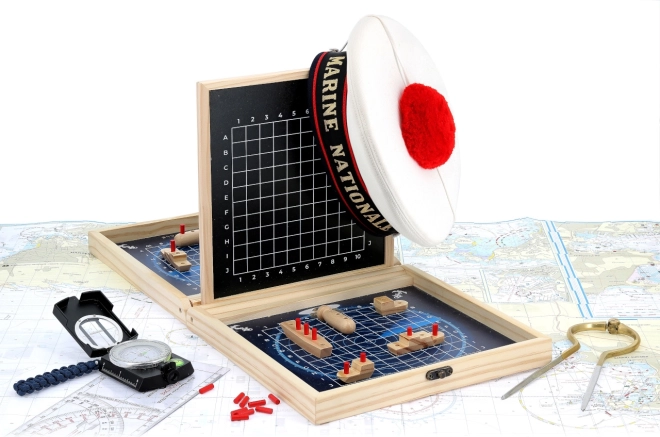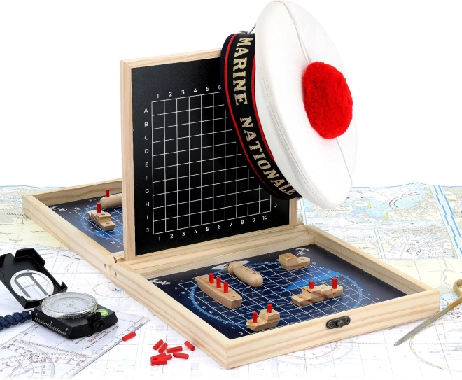 Fedezze fel a szépséget és a stratégiát ezzel a kidolgozott játékkal a Vilactól, amely a tengeri csatát otthonába hozza. Praktikus fa bőrönd nemcsak a játékelemek tárolására szolgál, hanem játéktérként is működik. A krétával rajzolható felületek lehetővé teszik, hogy könnyen nyomon kövesse, hogyan halad a csatája. Tartós fa darabok garantálják a hosszú élettartamot, és az attraktív dizájn a gyerekeket és felnőtteket egyaránt lenyűgözi.