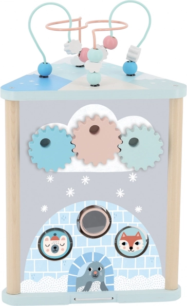 Ez a fa játék a téli birodalom témájával több aktivitást kínál, amelyek segítenek gyermekének készségeik fejlesztésében:
