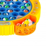 Szórakoztató családi horgászjáték forgó platformmal és zenével, amely tartalmaz 45 halacskát és 4 horgászbotot 1–4 játékos számára. Fejleszti a reflexeket, a koncentrációt és a kézügyességet, színes, kivehető pohárkákkal a fogásokhoz és hangeffektekkel. Működéséhez 3× AA elem szükséges.