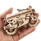 Az UGEARS összeszerelhető robogója egy okos, fa mechanikus építőkészlet, amely ötvözi a szórakozást, a technikát és a dizájnt. Az átgondolt, kompakt felépítésnek köszönhetően az érzékeny részek könnyen összecsukhatók, így a modellt magával viheti – akár a hátizsák zsebében is. A felhúzós meghajtás fém rugóval egy felhúzással akár 2 métert is megtesz.