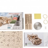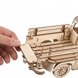 Ismerd meg a klasszikus erőt és eleganciát: ez a fa, mechanikus pick-up modell a UGEARS-től ötvözi a precíz kivitelezést, az erős rugómotort és a valósághű funkciókat, köztük a hátramenetes váltót, a differenciálművet és a nyitható ajtókat és motorháztetőt. Egy felhúzással akár 6 métert is megtesz, és csaknem 0,5 kg rakományt szállít.