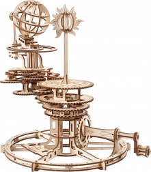 A UGEARS tellúrium egy gyönyörű 3D fa mechanikus modell, amely a kopernikuszi rendszer elveit a kezedbe adja. A kézi karral mozgásba hozod a fogaskerék-rendszert, amely valós arányban ábrázolja a Föld forgását, a Hold keringését és a Nap körüli mozgást, beleértve a Föld tengelydőlését és a Hold keringési síkját.