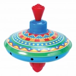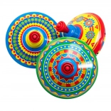 Minden pörgettyű kiemelkedik színes, geometriai mintáival, melyek vonzzák a tekintetet és szórakoztatják a gyerekeket.