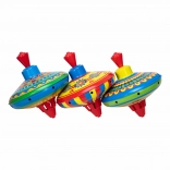 Fedezd fel a hagyományos játék varázsát – a Schylling fémből készült pörgettyűjét. Ez a játék élénk színekkel és retro mintákkal van ellátva, melyek minden gyereket megragadnak. A pörgettyű egyszerű kar lenyomásával forgatható, amit a jellegzetes hang kísér, amit a gyerekek imádnak.