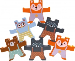 Szórakoztató egyensúlyozó játék aranyos, tömör fából készült mackókkal, amely fejleszti a gyerekek ügyességét és türelmét. Tartalmaz 12 masszív figurát biztonságos festéssel, ideális a finommotorika és a kéz–szem koordináció fejlesztésére. Szuper választás 3 éves kortól.