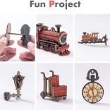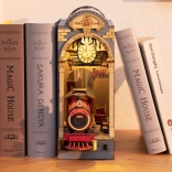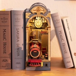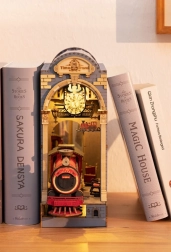 Ez a DIY készlet lehetőséget kínál egy saját miniatűr modell vonatállomás megalkotására, melyet könyvei közé helyezhet a polcra. A készlet tartalmaz 258 darabot, amelyek részleteket alkotnak, mint a peron, padok, csomagok és a működő órák, ami csodálatos dekorációvá varázsolja.