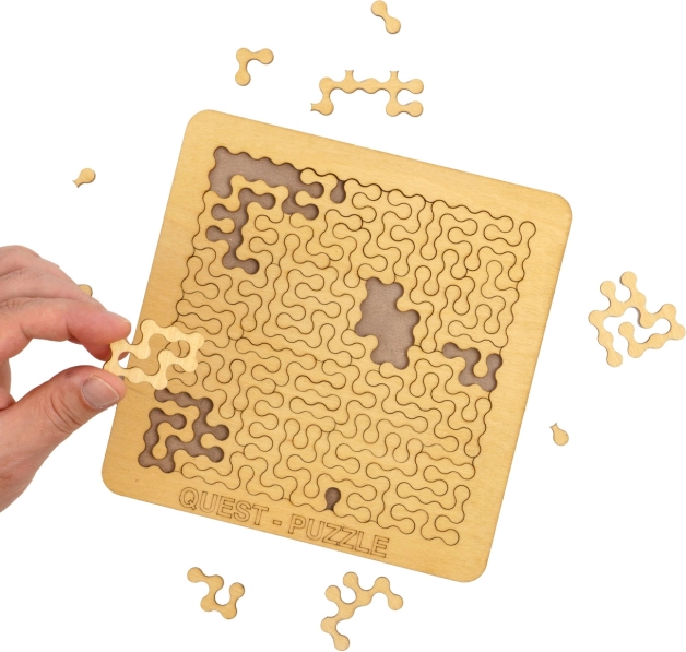 Ez a dizájnos fa kirakó kihívás mindenkinek, aki szereti az okos fejtörőket. Minden lépés a megoldás felé egyre összetettebb, a befejezéshez pedig átgondolt stratégia, türelem és éles megfigyelés szükséges. A masszív anyagnak és a precíz lézervágásnak köszönhetően az elemek tökéletesen illeszkednek, az összerakás folyamata pedig gördülékeny és élvezetes.