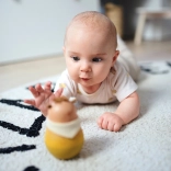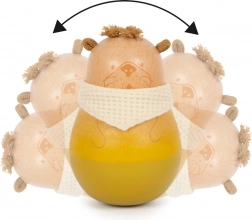 Interaktív játék belső csengővel, amely minden mozdulatnál serkenti a hallást. Az önmagát visszaállító mechanizmus fejleszti a motorikus készségeket.