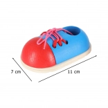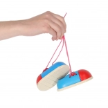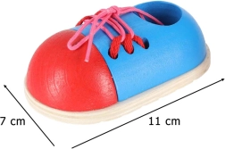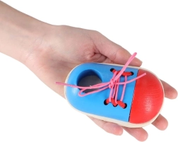 Szórakoztató és praktikus eszköz gyerekeknek, akik a cipőkötést tanulják. Két kompakt fa cipőcske fejleszti a finommotorikát, a logikus gondolkodást és az önállóságot. A masszív fa kivitelnek és a kis méretnek köszönhetően otthonra és utazáshoz is kiváló.