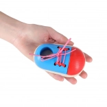 A szett két cipőcskét és egy pár cipőfűzőt tartalmaz, így a gyermek különféle kötési módszereket gyakorolhat. Kompakt méretének köszönhetően könnyen tárolható, és utazáshoz is remek választás.