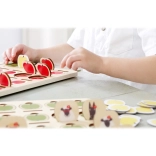 A 4 FRIENDS sorozat állatbarátaival a gyerekek nyomozásba kezdenek az almakuktató után, miközben játékosan gyakorolják a logikát, a vizuális megkülönböztetést és a türelmet. A masszív fa táblák illusztrált zsetonokkal és a figurakártyák készlete hosszú órákra garantálja a szórakozást kicsiknek és nagyoknak.