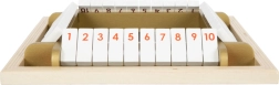Masszív fa tábla 1–10-ig számozott, billenthető lapkákkal és modern arany díszítéssel, amely megjelenésével és tartósságával is lenyűgöz – ideális gyerekszobába és nappaliba egyaránt.
