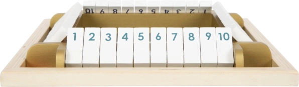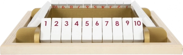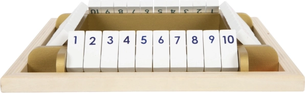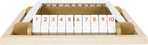 A klasszikus SHUT THE BOX modern változata, elegáns arany részletekkel, támogatja a gyerekeket a korai matematikai készségek, a logika és a figyelem fejlesztésében. Az 1–10-ig számozott, billenthető lapkák ösztönzik a kockadobások összegének gyakorlását és a gyors döntéshozatalt – mindezt játékos formában.