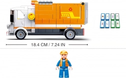 A szett része egy munkás figura, szemetesbina és az autó átgondolt részletei, beleértve a „hulladékszállításhoz” szükséges emelőmechanizmust. A kompatibilitásnak köszönhetően a LEGO-val, Cobi-val, Mega Bloks-szal és más márkákkal könnyedén bővítheted a városodat, és saját történeteket találhatsz ki.