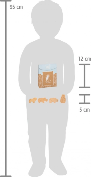 E nyolc masszív fa kekszből álló kollekció tökéletesen utánozza a szavannai állatok formáit és részleteit. Minden csomag 2 oroszlánt, 2 majmot, 2 orrszarvút és 2 elefántot tartalmaz, természetes hatású megjelenésük biztosan magával ragadja a kis felfedezőket. A kekszek erős kartondobozban vannak, amelyet könnyű kinyitni és bezárni, és feldobnak bármely gyerek árusító standot vagy játékkonyhát.