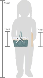 Indulj el egy családi piknikre! Ezzel a piknikkosárral, amely mindent tartalmaz, ami két személy számára szükséges, minden kirándulás a kertbe vagy a természetben egyedülálló élménnyé válik. A kosár nagyszerű kiegészítő a gyerekek számára, mivel támogatja a szerepjátékot és a kreativitást. Fából készült tányérok, kések és ételek találhatók benne, amelyek a tépőzáraknak köszönhetően egyben maradnak. A belső bélés könnyen tisztítható, ami növeli a praktikusságát.