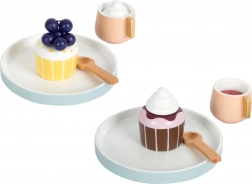 Ez a teás és kávés készlet ideális kiegészítő a gyerekkonyhába, új dimenziókat adva a játéknak. Tartalmaz csészéket, tányérokat, kanalakat, cukortartót, tejeskancsót, kancsót és sok más dolgot, beleértve dekoratív muffinokat és tejszínt. A termék jellemzői: