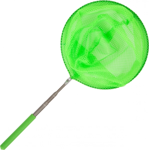 A teleszkópos rúddal ellátott háló praktikus a pillangók és egyéb rovarok elkapására. Zöld színe könnyen felismerhető még a fűben is.
