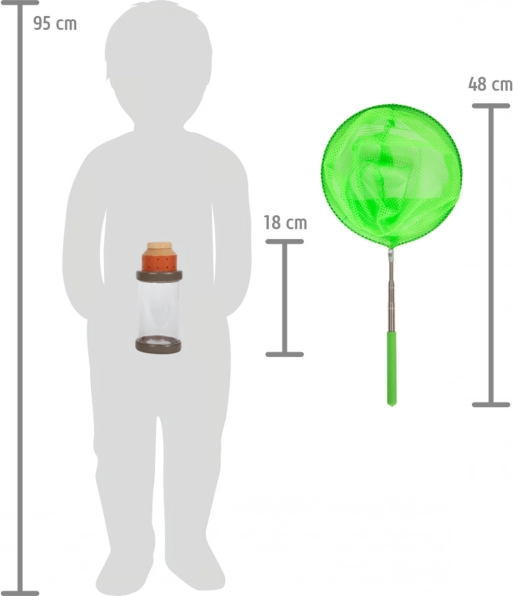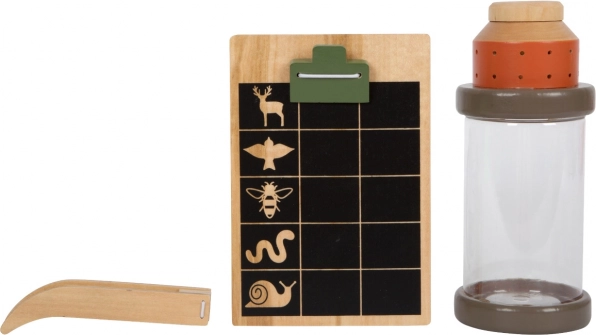 Ez a készlet tökéletes választás kis felfedezőknek, akik szeretik a természetet. Tartalmaz fa csipeszt, csíptetős táblát, pillangóhálót és nagyítós rovartartót, amelyek lehetővé teszik a fiatal kutatók számára a környező világ biztonságos vizsgálatát.