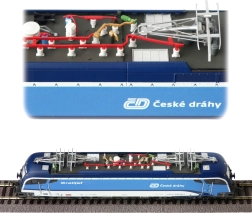 A Siemens ikonikus RH 1216 TAURUS mozdonyának ez a pontos replikája a Cseh Vasutak (VI. korszak) kivitelében kiemelkedik rendkívül precíz részletességével – a finoman modellezett fékrendszerű forgóvázaktól a tűéles, kontrasztos piktogramokkal ellátott tamponnyomásig. Az aerodinamikus kasztnit gondosan felszerelt kapaszkodók, fellépők és valósághű tető egészíti ki négy áramszedővel.