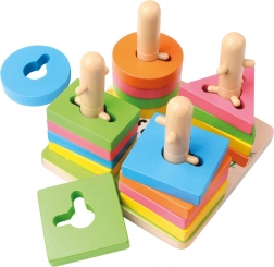 A játék ideális első lépés a logikus gondolkodás felé – a gyerekeknek a kivágásokat kell igazítaniuk és helyesen felfűzniük a formákat. A tartós fa kivitel és a sima élek biztonságot és hosszú élettartamot nyújtanak. Remek választás önálló játékhoz és közös tanuláshoz a szülőkkel.