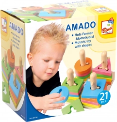 Ez a minőségi fa fűzős játék 21 színes elemet és stabil, csapokkal ellátott alapot tartalmaz. Az okosan kialakított nyílásoknak és oszlopoknak köszönhetően a gyerekek gyakorolják az alakok párosítását, a színek felismerését és a térbeli észlelést. A kompakt 15 × 11,5 × 15 cm-es méret könnyű tárolást és asztalon vagy alátéten való játékot tesz lehetővé.