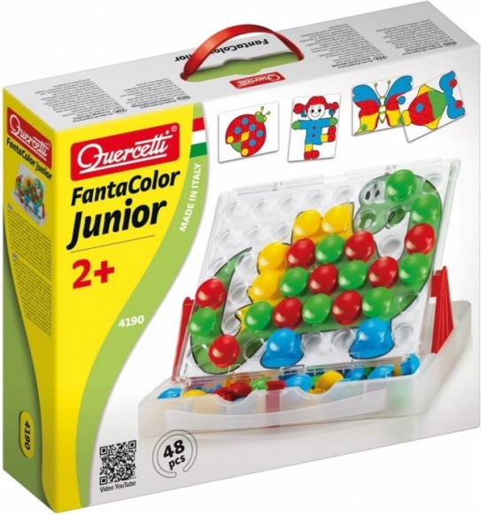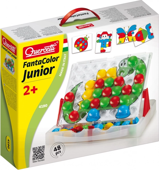 Fedezze fel a QUERCETTI FANTACOLOR JUNIOR kreatív mozaikot, amely fejleszti a gyerekek fantáziáját és finommotorikáját. A nagy szegecseknek köszönhetően a gyerekek könnyen kezelik, a praktikus bőrönd mindent egyben tart, a 8 kétoldalas sablon pedig alkotásra inspirál. A játék támogatja a színfelismerést, a kéz–szem koordinációt, a koncentrációt és a türelmet.