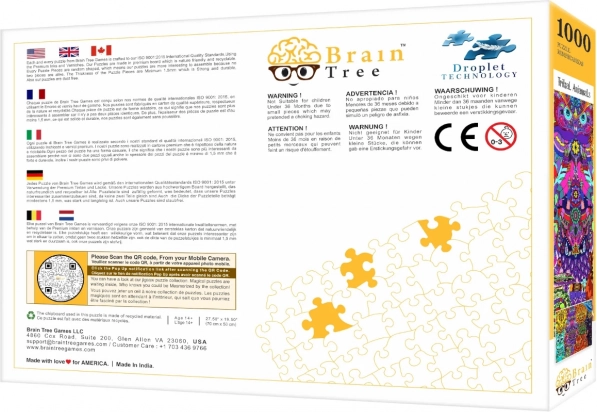 A BRAIN TREE Törzsi állatok puzzle vizuálisan lebilincselő, színekben és részletekben gazdag motívumot kínál, amely a prémium nyomatnak és a matt felületnek köszönhetően igazán kiemelkedik. Minden darab egyedien vágott, így az építés szórakoztatóbb és meglepőbb, mint a klasszikus rácsos vágásoknál.