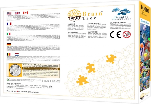 A Brain Tree Színes Tenger puzzle mindenki számára, aki szeretné élvezni a kalandot a víz felszíne alatt. Az 1000 különböző formájú darabbal az eredetiség jegyében élvezheti a kirakást. A matt felület biztosítja, hogy a kép minden részlete jól látható különböző megvilágításban is. Minden darab nemcsak egyedi a formájával, hanem kopásálló is.
