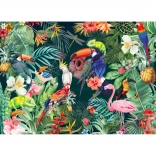 Élénk dzsungel trópusi madarakkal és növényekkel felvillanyozza a kirakójáték élményét, és elrepíti az esőerdők szívébe.