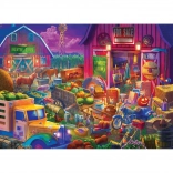 A Puzzle Brain Tree Alkony az udvaron elrepít egy festői, élettel és színekkel teli farmra. A pajtát, állatokat, régi teherautót és szezonális termést ábrázoló gazdag jelenet minden részletgazdag illusztráció kedvelőjét elbűvöli. A csúcsminőségű nyomat és a matt felület változó fényviszonyok mellett is kiemeli minden motívumot.