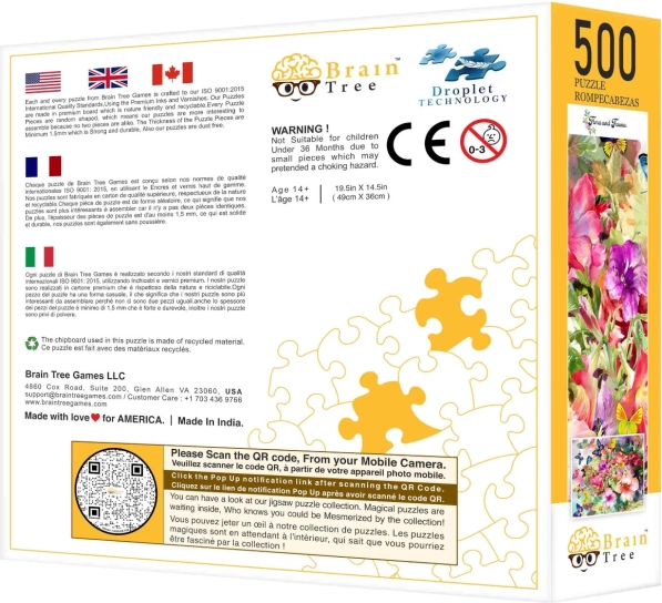 A Brain Tree sorozat puzzle-ja elbűvöl a vonzó dizájnjával, amely ötvözi a virágok és pillangók szépségét. A véletlenszerűen vágott darabokkal új kalanddimenziót fedezhet fel az összerakás során. A kínált praktikus kiegészítők, mint a papír állvány és karton rekeszek, még kényelmesebbé teszik az élményt. Ezen felül a csomag tartalmaz egy 52×30 cm-es posztert, amely mintaként szolgál az összerakáshoz. Élvezze a szórakozást családjával vagy egyedül egy nyugodt estén.