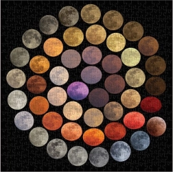 A motívum Marcella Julia Pace asztrofotóiból készült, amelyeket Olaszország különböző pontjain tíz éven át készített. Minden felvétel megmutatja, hogyan változnak a telihold színei – a horizontnál megjelenő vöröstől és sárgától egészen a ritka kék árnyalatokig, amelyeket a légkörben lebegő porszemcsék okoznak.