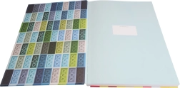 A kemény borító dombornyomott kockamintája nemcsak jól mutat, hanem megkönnyíti a füzet azonosítását tapintás alapján is.