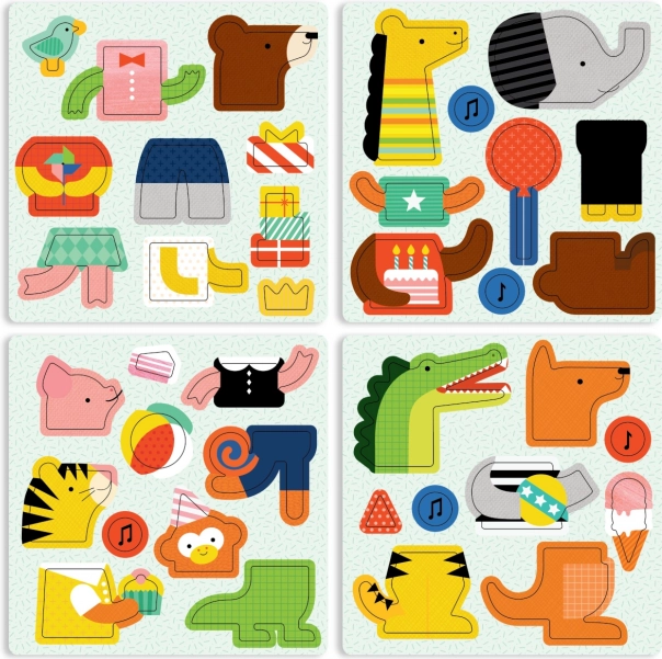 A csomag tartalma változatos és vicces állatos jelenetek kirakását teszi lehetővé. A játék kreativitást, finommotorikát és koncentrációt fejleszt, emellett tartós és újra meg újra használható.