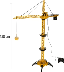 A sárga-fekete daru távirányítóval vezérelhető, a készlet tartalmazza a távirányítót. Olyan gyerekeknek készült, akik szeretik a építőgépeket. A daru önállóan összeszerelhető.