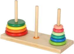 Ez az időtálló logikai játék türelmet és koncentrációt fejleszt: a feladat az összes korong áthelyezése az első pálcáról az utolsóra úgy, hogy ismét a legnagyobbtól a legkisebbig legyenek sorba rendezve – egyszerre csak egy korong mozgatható, és kisebb korong nem kerülhet nagyobbra. Egyszerűnek hangzik, de alaposan próbára teszi a gyerekeket és a felnőtteket is.