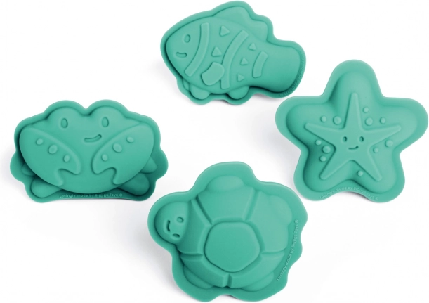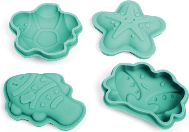 A készlet négy különféle szilikon formát tartalmaz rák, hal, tengeri csillag és teknős alakban, gyermekei maximális kreativitásához.