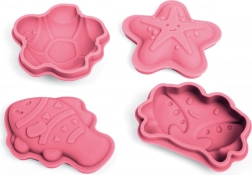 Ezekkel a puha és rugalmas tengeri csillag, rák, hal és teknős alakú formákkal a gyerekek könnyedén készíthetnek részletgazdag lenyomatokat és építményeket. A homokozóban, a strandon és a kertben is megállják a helyüket, vízzel vagy gyurmával is remekül használhatók. A rugalmas anyagnak köszönhetően minden gond nélkül kifordítható és újra felhasználható.