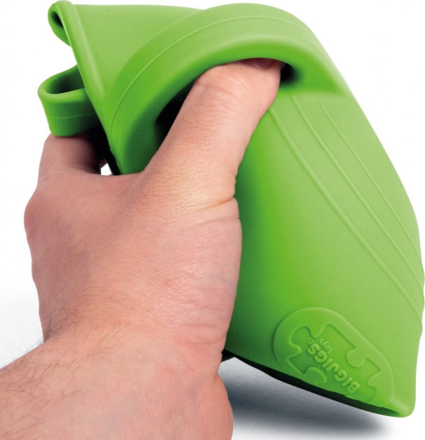 A BIGJIGS Toys gyerek szilikon locsolókannája zöld Meadow színben támogatja a vizes játékokat és az első kertészkedős lépéseket. A rugalmas és tartós szilikon jól tartja a formáját, kellemes tapintású, és nem árt neki sem a nap, sem a hőmérséklet-ingadozás. Az ergonomikus fogantyú megkönnyíti a fogást és az öntést.